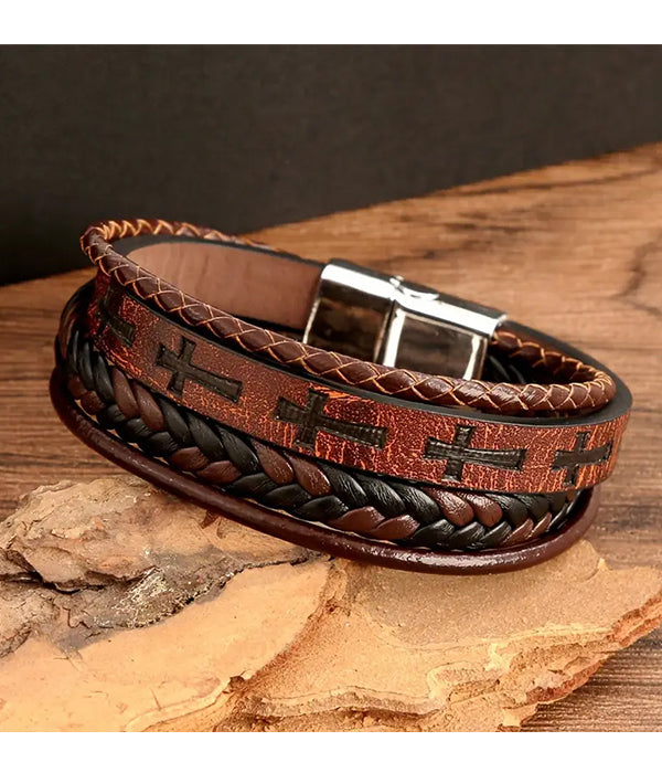 BRAIDED LEATHERETTE BRACELET : Size- LENGTH 8.27 INCHES : Color- BR